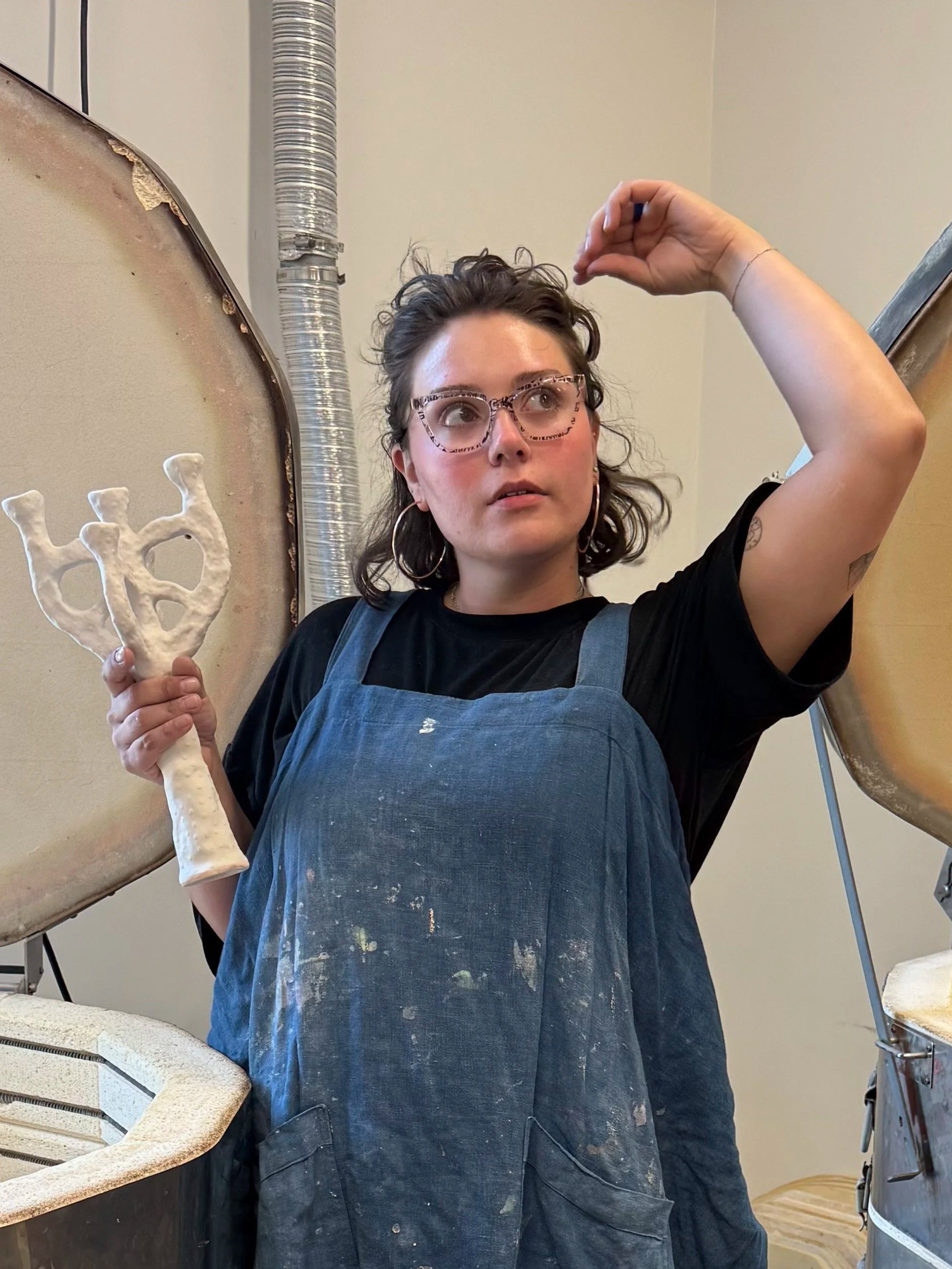 Utilizing clay, fiber, paper, print, and found object, my work explores the complexities and pitfalls of identity and emotionality. Each piece poses a question or thought based on what it is like to peel yourself open and share snippets of grief, depression, anxiety, headache, menstruation, exhaustion, overwhelm. Works and their associated titles are drawn from daily experiences and conversations with students, friends, and family, especially my 88-year-old grandmother. Playing on features of my own identity and experience as a mixed Latina woman from the south, I wiggle through both critique and glamorization of performative femininity and religiosity, dwelling on the talismans we cling to as we attempt to survive daily life in 21st century America.